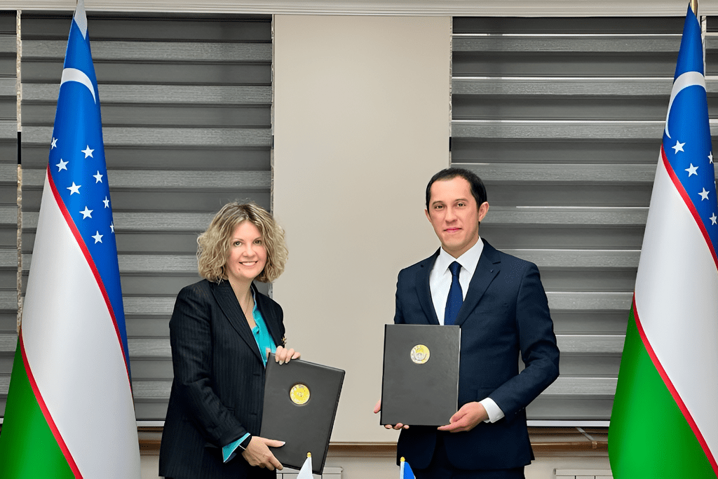 Президент РАФИ Татьяна Белькевич и заместитель директора Агентства по развитию легкой промышленности Узбекистана Рухулло Зикриллаев подписывают меморандум о стратегическом партнерстве. Источник: Instagram-канал* Агентства по развитию легкой промышленности